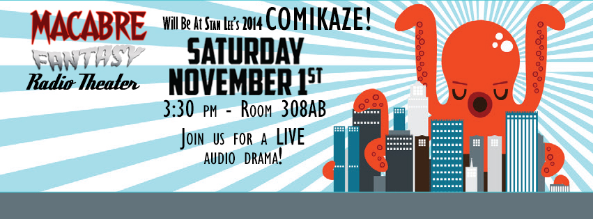 Macabre Fantasy is coming to the Comikaze Expo! We will be performing a LIVE audio drama in the style of Old Time Radio on the afternoon of Saturday, November 1st at 3:30pm (Room 308AB). Tickets are available along with more info on the con through this link: comikazeexpo.com #Comikaze14, @StanLeeComikaze